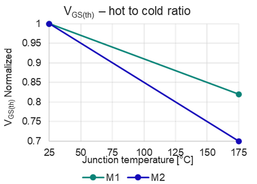 除了常温阈值的严格一致性,相对于平面栅厂家,英飞凌 CoolSiC™ 产品具备更低的栅源阈值电压温度系数,这使得其对动态电流不均流的正反馈就非常弱。这一特性可保障并联运行的稳定性,因此具有显著优势。