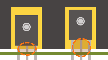 典型的PCB布局及改善方法如下图所示。初版设计中两个D2PAK器件左右放置,源极与漏极功率走线分别朝左右走线。所在左边器件的漏极电感LD较高,右边器件的源极电感LS较高。改版之后,虽仍保持器件左右放置,但功率走线从垂直方向引出,这样就证了两个器件功率回路对称。