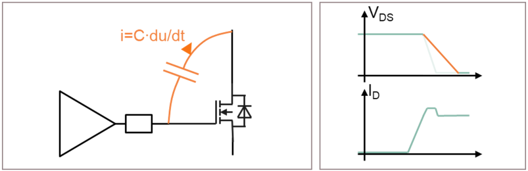 PCB布版中两个导电层相交叠就会形成电容。如果这个寄生电容出现在漏极和栅极之间,相当于增加了器件的米勒电容Cgc,使得关断时dv/dt变慢。