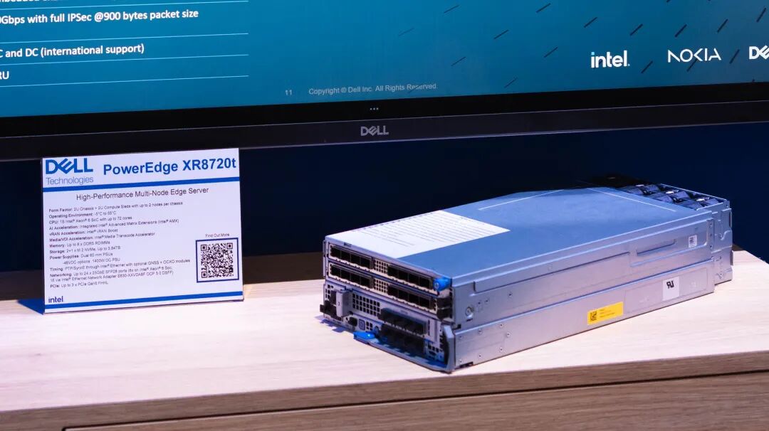 戴尔展示PowerEdge XR8720t高性能多节点边缘2U服务器,搭载单颗英特尔至强6 SoC(Granite Rapids-D),拥有多达72个核心。