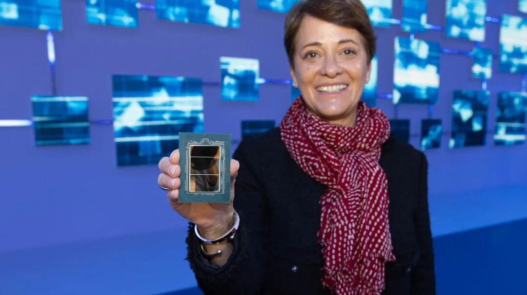 英特尔网络与边缘事业部(NEX)副总裁兼总经理Cristina Rodriguez手持英特尔至强6 SoC(Granite Rapids-D)。
