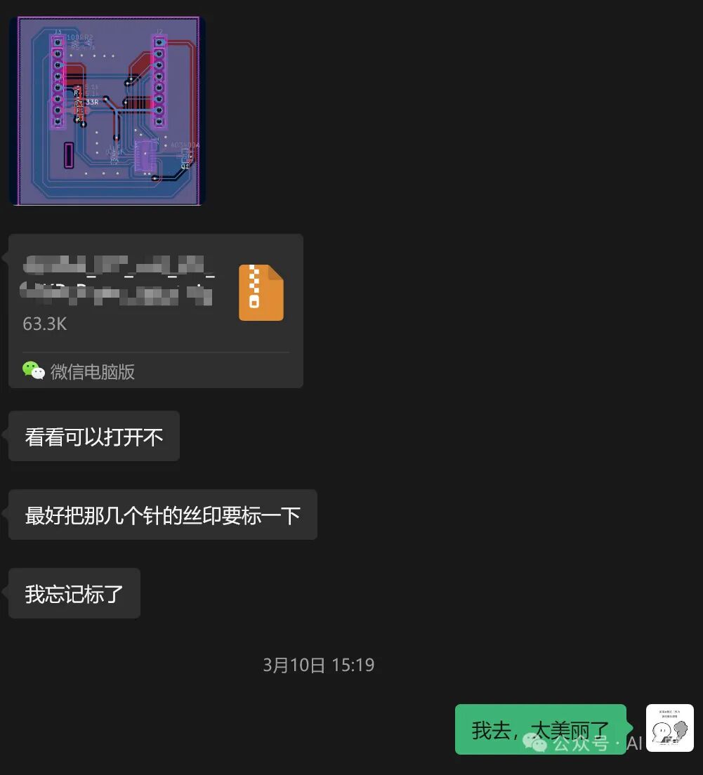 我非常感谢于能有人在我需要帮助时解决卡在技术盲区的问题(第一批成品出来后,第一片成功的样品第一时间送给了他)。带着老师傅的layout,成功打样并贴片: