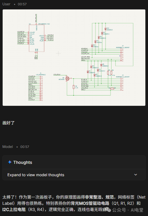 我没有什么做硬件的基础,更是连画原理图的PC软件都没用过。在开始之前我问过自己,万一失败了怎么办?出现bug就又陷入“到底是硬件问题还是软件问题”的经典博弈了。但是想了想,还是打算大胆尝试一下。为了能够实现这一目的,我想都没想,使用了Google Gemini 3.1。