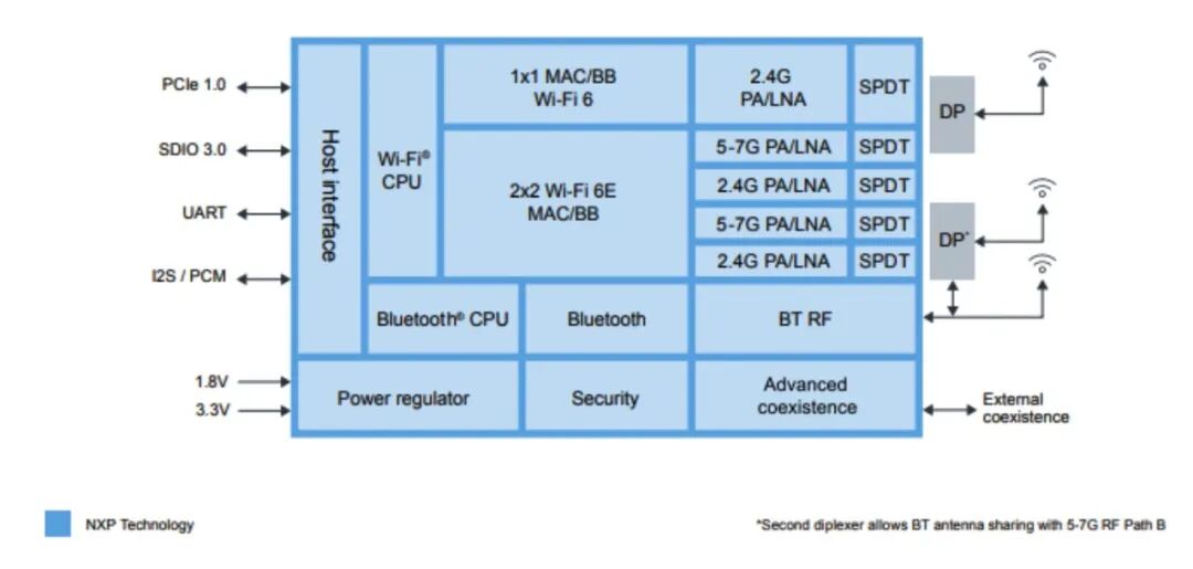 2X2 Wi-Fi 6E三频段 (2.4/5/6GHz) 和蓝牙