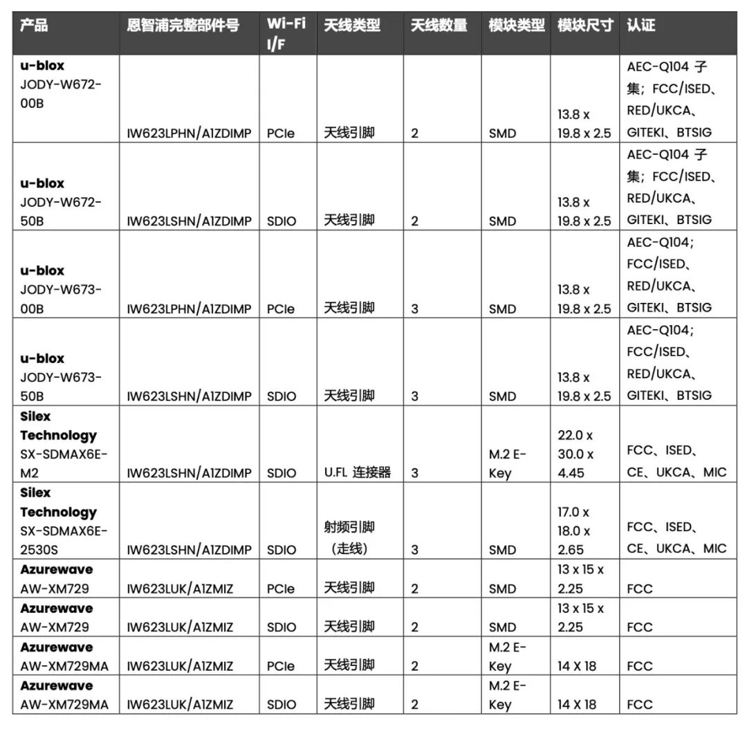 IW623:2X2 Wi-Fi 6E三频段 (2.4/5/6GHz) 和BT 5.3