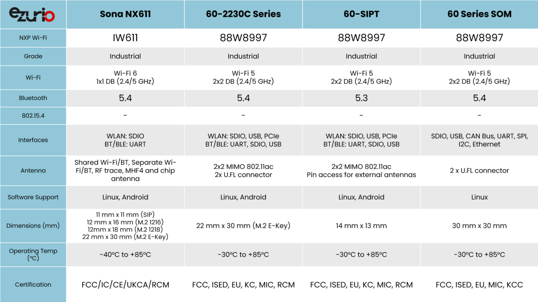 Ezurio是恩智浦的一个金牌模块合作伙伴,也是一家无线连接与模块化系统 (SoM) 制造商。Ezurio与恩智浦紧密协作,提供可靠稳健的无线模块,全面支持Wi-Fi 6与Wi-Fi 5。