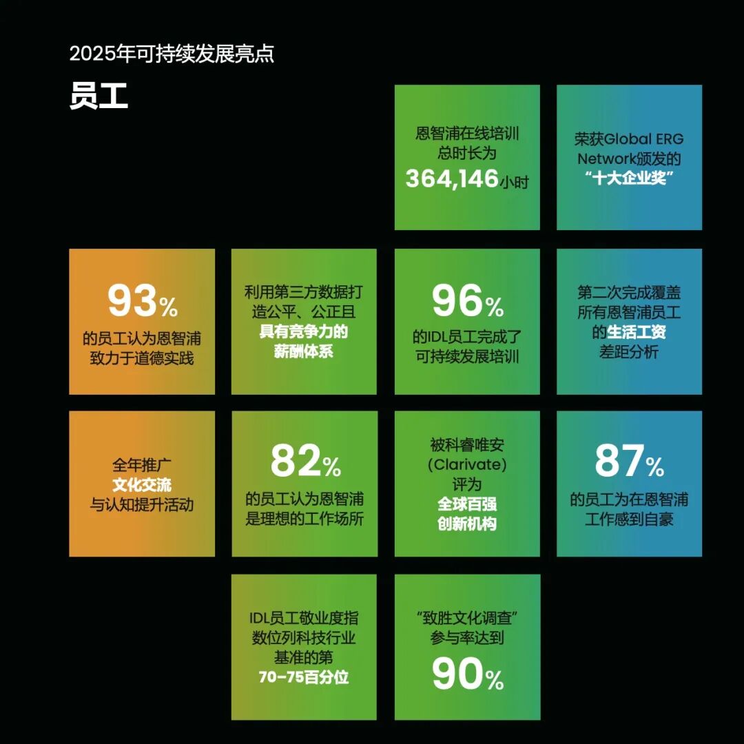 日前,恩智浦发布了《2025年企业可持续发展报告》,全面总结了2025年恩智浦在环境、团队与治理方面持续推进可持续发展的目标和举措,以及所取得的进展和主要成就。