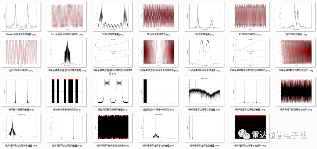 2.实现了典型雷达信号样式,包括简单脉冲、线性调频、非线性调频(2种)、Barker码等典型样式;