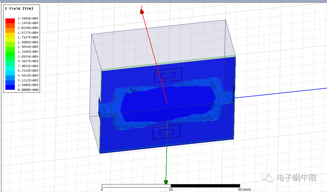 SRR上根本没有电场分布,电场分布在中间那一段导线上,于是我将两个SRR删除,发现S11曲线也没有发生变化,所以谐振全部是由中间那一条线产生的,那之前我们所仿真的都是错误的。心态爆炸