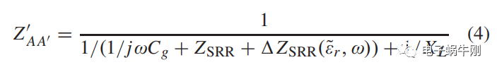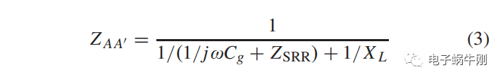 ZSRR = RSRR + jωLSRR +1/jωCSRR是从微带线上看到的SRR的等效阻抗,XL是由于开路负载和微带线的L2长度而产生的一个恒定的电抗。位置AA'处的阻抗匹配要求ZAA'=Zc在谐振频率处。根据传输线理论,可以通过调谐L2和间隙电容CG来实现这一点。请注意,调优L2和调谐CG时XL的变化范围很广,可以有效地影响ZAA'的电阻。因此,微带线在aa位置的阻抗是