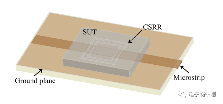 下图给出了一个典型的基于CSRR的复介电常数接触测量装置,