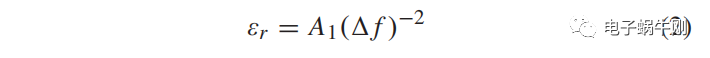 其中εr是相对介电常数,△f是由SUT引起的频率偏移,A、B和C是可以由多个已知SUT校准的常数。为简单起见,SUT被简单地假定为线性地影响SRR或CSRR的总电容和/或电感。在这种情况下,介电常数可以计算为