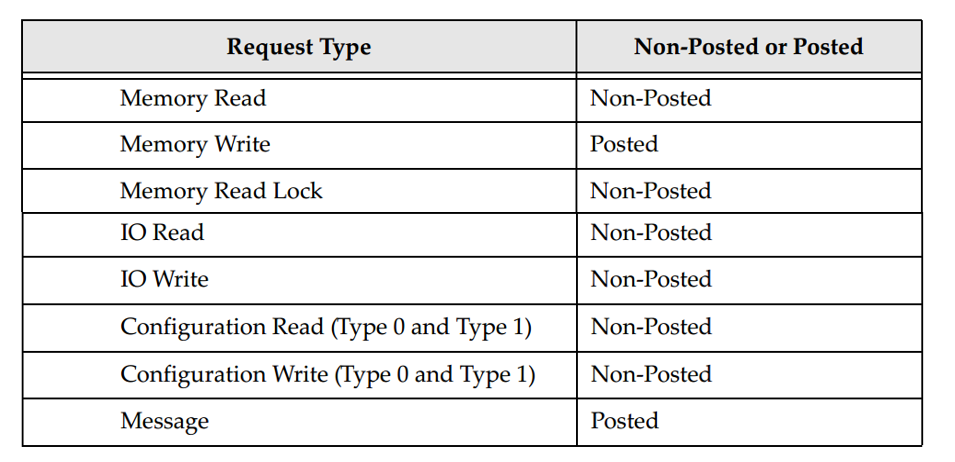 TLP请求分为Posted(带发布)和Non-Posted(非带发布)两类。Posted请求类似于发送普通邮件,发出后无需等待确认;因此这类操作没有响应。而非Posted请求则类似于寄送挂号信,必须收到对方的签收回执才算完成;因此Requester会等待Completer返回一个完成包(CpLD)。具体来说,MWr是Posted请求,故无返回;而MRd是Non-Posted请求,因此Requester会等待Completer返回CpLD。