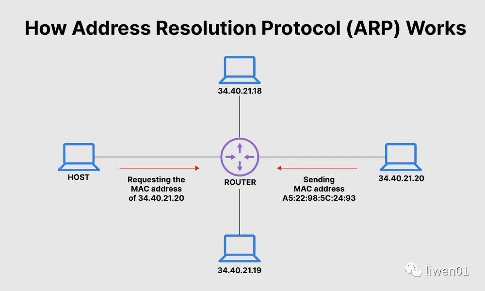 如果设备刚连接上设备,路由器ARP缓存表上没有该设备IP和MAC地址信息,那么路由器会广播,“谁拥有这个IP地址对应的MAC地址?”,该IP的设备收到该广播后,正常应该将自己的MAC地址告知路由器。