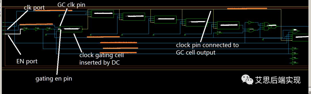 这个时候,是没有clock gating的设计的,工具严格遵守RTL的设计产生了这段网表结构。
