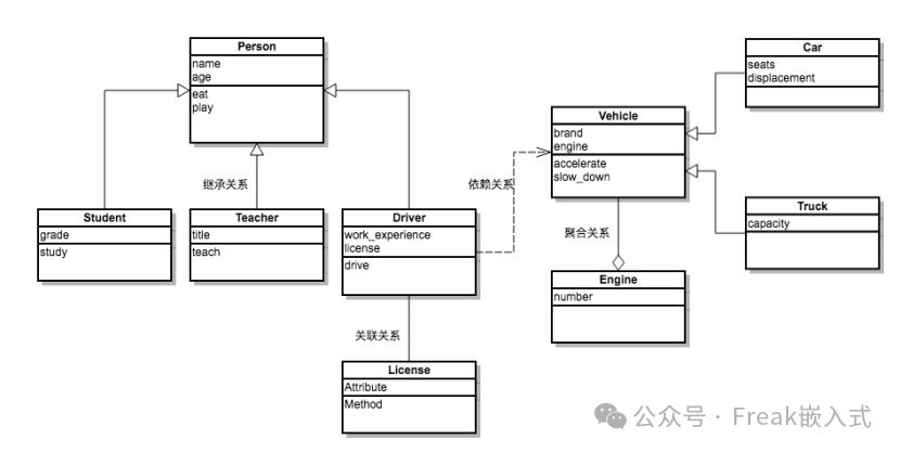 - is-a关系也叫**继承**或泛化,比如学生和人的关系、手机和电子产品的关系都属于继承关系。在面向对象编程中,一个类可以从另一个类中继承属性与方法。