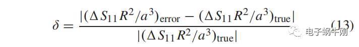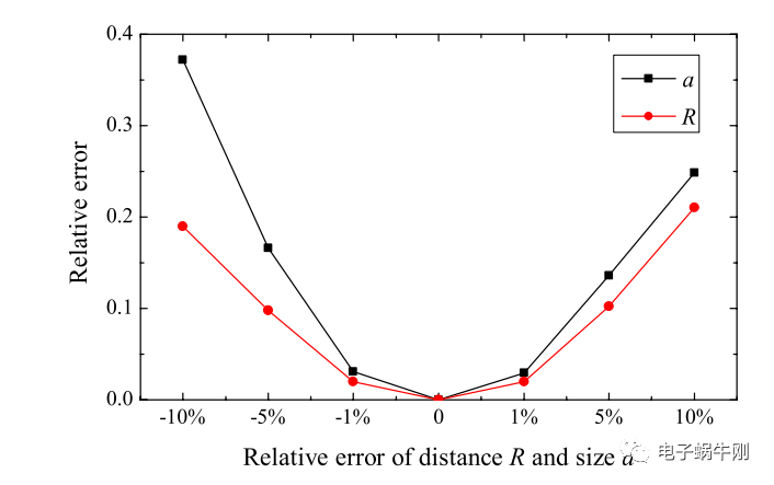 由于复介电常数与R和a具有非线性关系,由于SRR与SUT之间的距离误差和SUT的大小,很难直接计算被测复介电常数的相对误差。