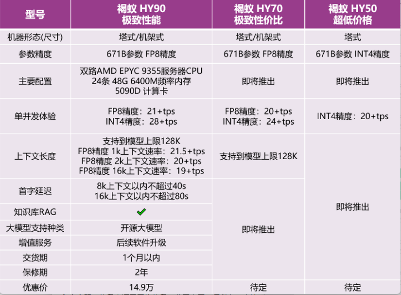 褐蚁是行云推出的首款一体机产品,于2025年4月正式发布。该产品旨在将顶级大模型(如满血版DeepSeek V3/R1)的本地部署成本从百万元级别降至十万元级别,是目前行云最主要的落地产品。