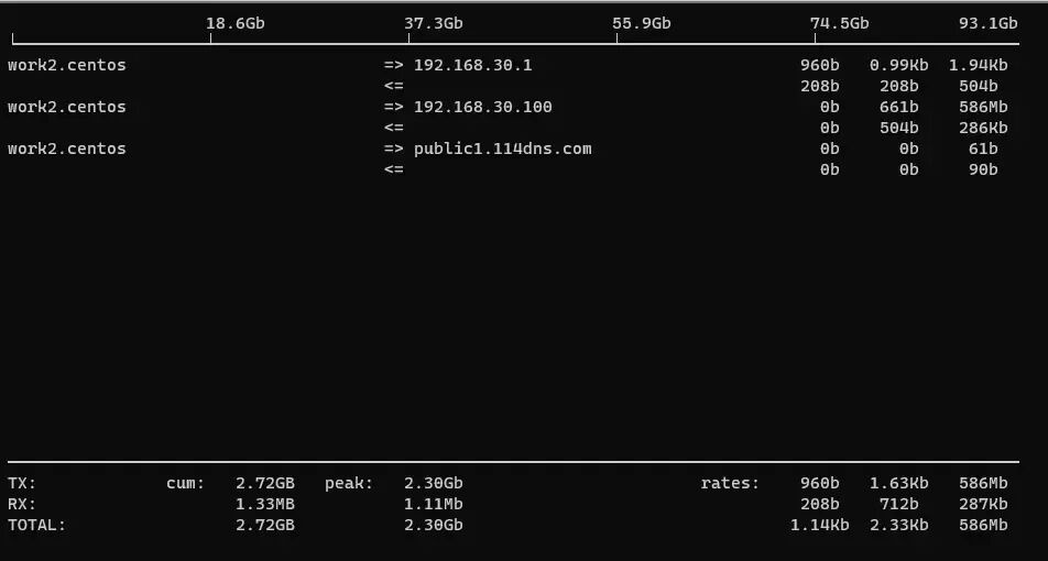 iftop 是一个免费的开源软件命令行系统监控工具,可生成主机对之间网络连接的频繁更新列表。连接可以按不同的参数排序,但默认情况下,它们按带宽使用量排序,仅显示 “top” 带宽消费者。
