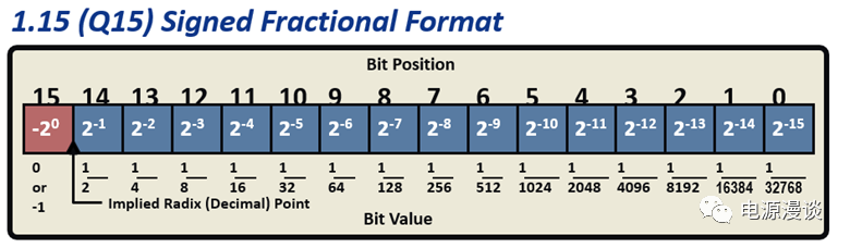 首先介绍一下我们所常用的Q15格式,因为我们的dsPIC33C系列芯片是基于定点运算的处理器,所以要处理电源环路涉及到的线性差分方程系数等小数时要将小数转化为与之对应的定点整数。