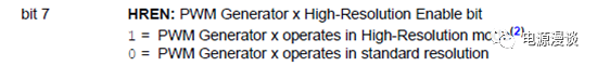 当读规格书时,细心的朋友会发现对于PWM高精度位使能,Microchip是规定了一些限制条件的。比如如下在寄存器说明时,通过小字体注释对HREN位的一个额外要求,即一定要在500M输入频率的条件下去使用PWM高精度模式。