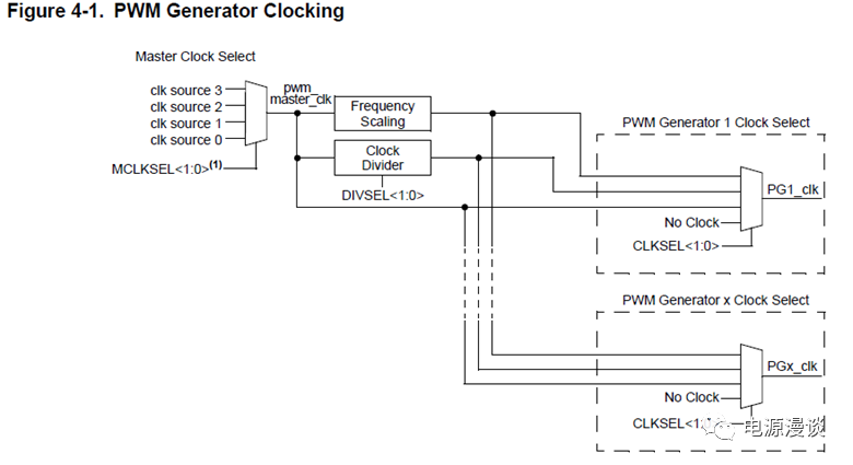 作为一个数字外设,其运行需要一定的时钟,所以我们理解高速PWM模块的运行及高精度模式运行之前,首先了解一下其时钟的分配方式。