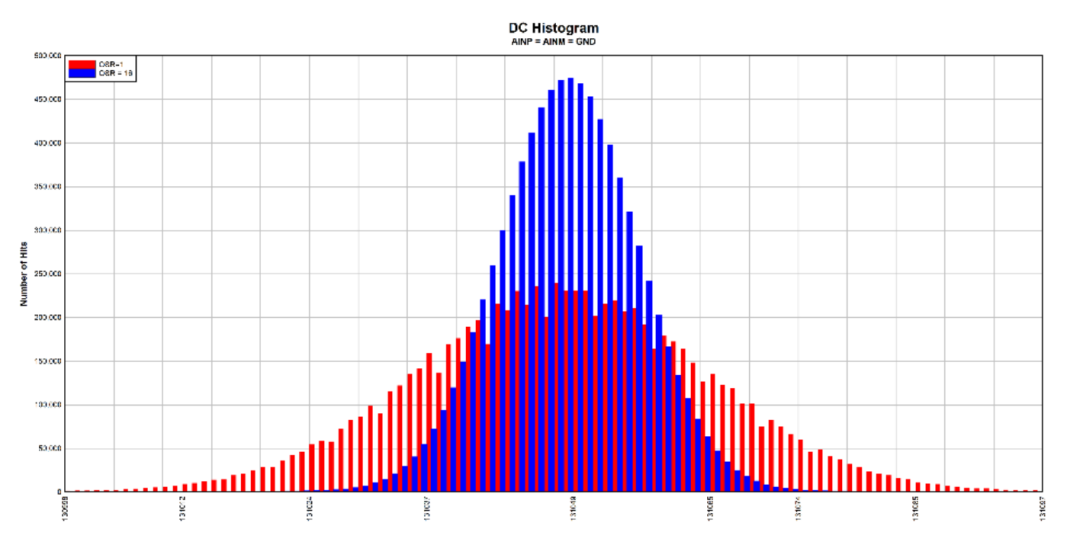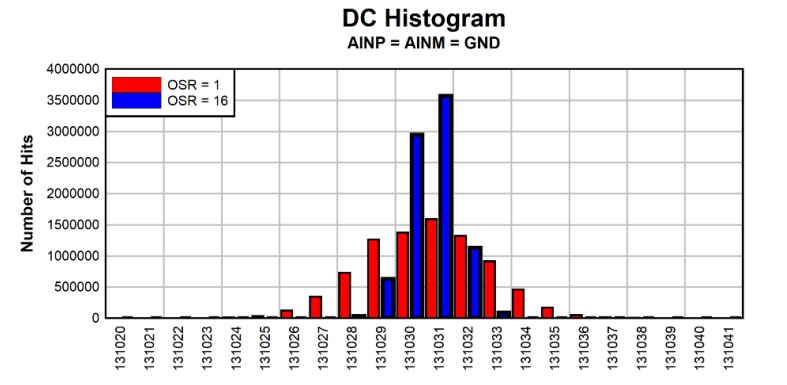 示例电路使用了 INA851 和 ADS9219。INA851 是一款具有全差分输出的低噪声、高速仪表放大器。图 3 和图 4分别显示了该电路在过采样率 (OSR) 为 1 和 16 时的直流直方图和阶跃稳定图。