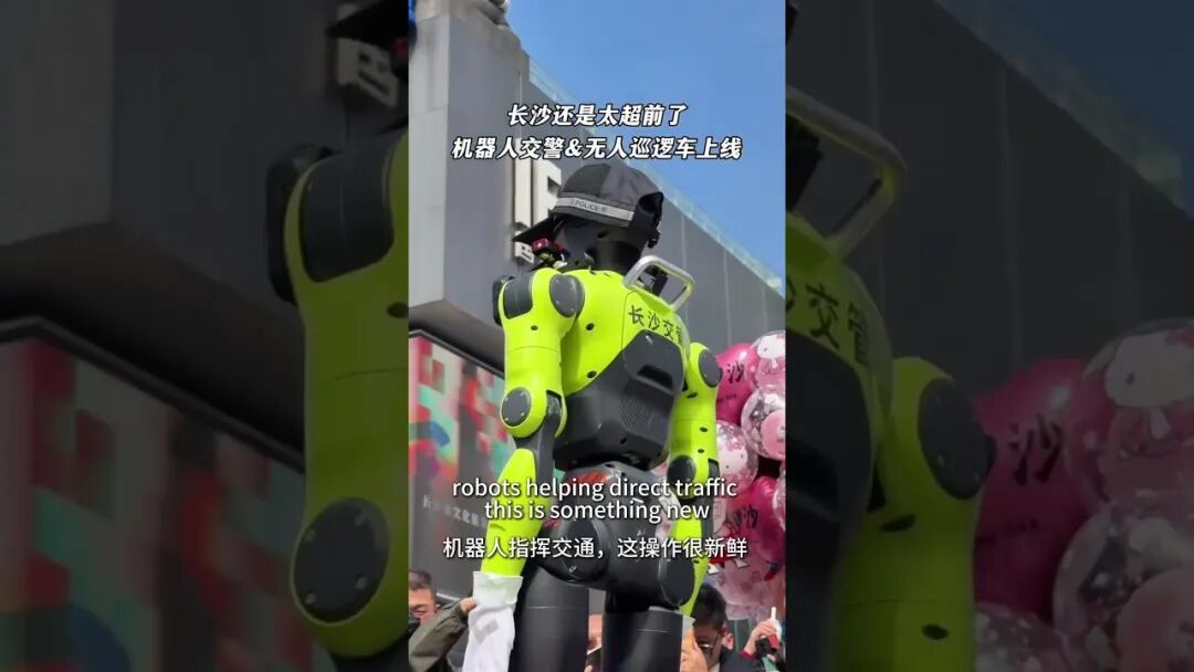 4月1日下午,长沙市公安局交通警察支队在五一商圈正式部署智能交通指挥机器人和无人巡逻车。据《湖南日报》报道,该机器人身着"长沙交管"荧光绿制服,头部摄像头灵活转动,能精准捕捉非机动车未戴头盔、越线停车等行为,并通过语音温和提示,甚至会对配合劝导的市民抬手敬礼。无人巡逻车则可全时段自动巡控,充当"移动电子警察"。