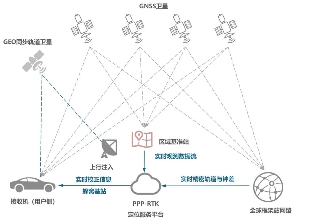 PPP工作时,地面用户设备(接收机)会通过互联网或卫星链路播发从CPF获取这些数据,然后,接收机通过内部算法,将得到的实时误差数据用于修正观测值,获得分米级精度的定位结果。