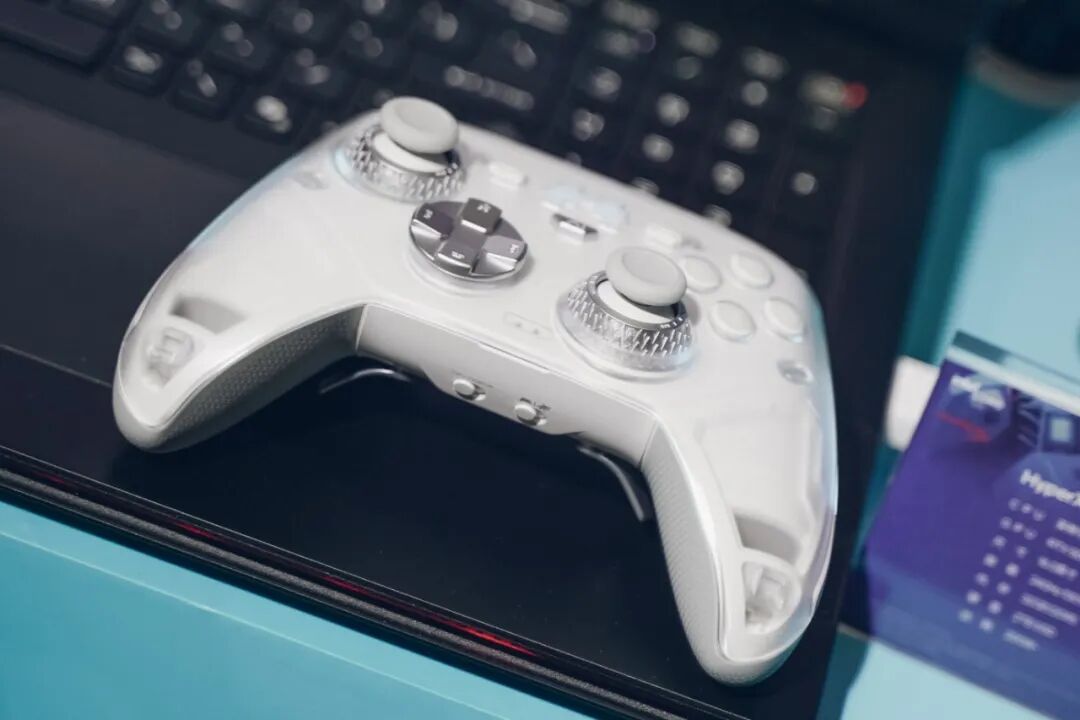▲ 北通手柄,带“AI自适应双切扳机”:酷睿Ultra处理器识别并理解游戏画面以后,北通的游戏手柄就能根据不同的场景,来切换按压扳机键的反馈;比如AI感知到玩家在操控手枪时,按压扳机键就会给出扣动手枪扳机的阻尼感;而切换为冲锋枪时,就会有连续发射的震动反馈;在赛车游戏中,扳机键作为油门或刹车控制按键时,也有对应不同的阻尼感,据说甚至能模拟沙石路面、柏油路面的不同感觉…