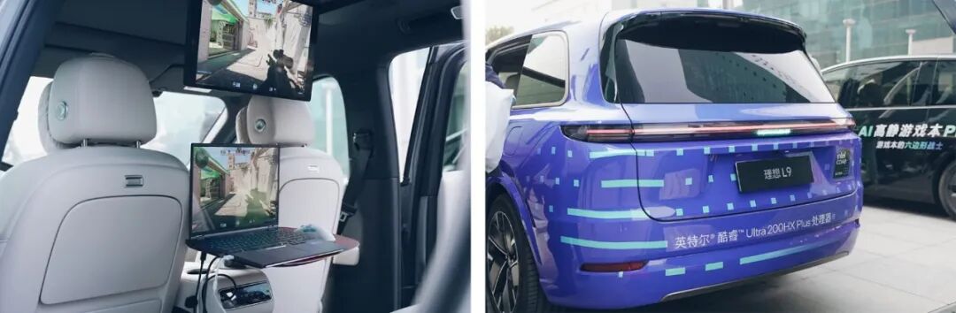 ▲ 和理想合作,围绕“AI高静游戏本Plus”搭建“5A级电竞房”;连接车内屏幕,配合可灵活调节的桌板、座椅、音响;外出时,“一家人可以吃吃玩玩”…