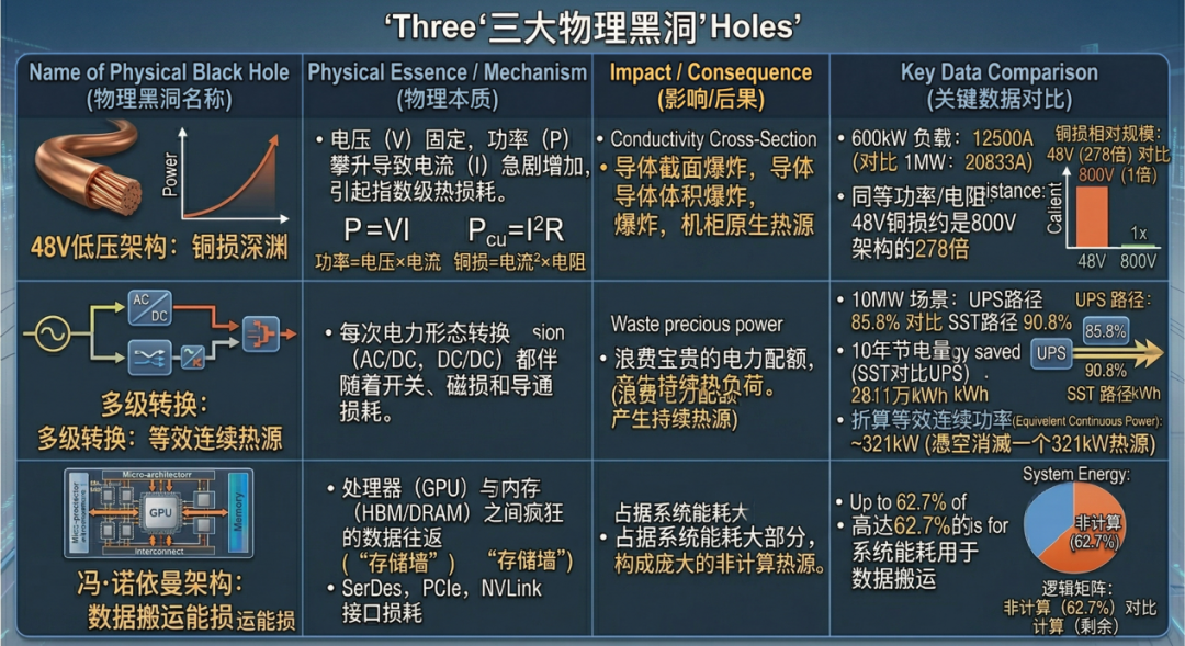 也就是说,未来真正的竞争,不是“谁的液冷更猛”,也不是“谁的 SST 更大”,而是: 谁能让输入系统的每一焦耳电能,尽可能少浪费在铜损、转换损耗、搬运热和瞬态失配上,尽可能多地变成有效算力。