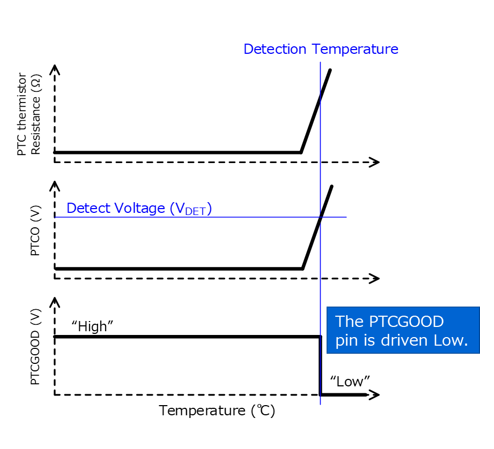如图所示,您可以通过结合东芝Thermoflagger™ 和PTC热敏电阻轻松创建超温检测电路。