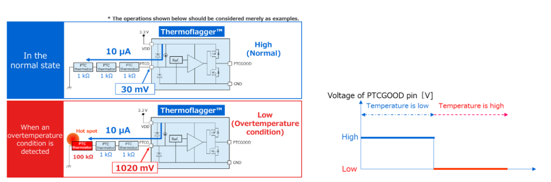 今天,我们深入了解了东芝Thermoflagger™ 的内部工作原理。它就像一个聪明的“电压判官”,通过检测PTC热敏电阻上电压的变化来判断温度是否异常。