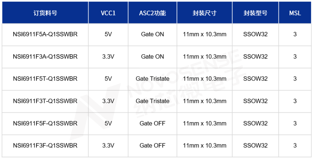 NSI6911系列采用SSOW32封装设计,与对标器件实现Pin to Pin/BOM to BOM级兼容,支持客户在现有设计基础上快速替换,无需调整PCB布局,从而显著降低导入门槛并缩短开发周期。
