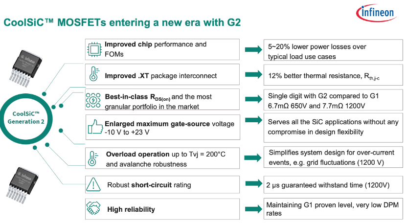 CoolSiC™ MOSFET G2与前代G1产品相比,在高可靠性的基础上,综合实力实现了全面地提升。