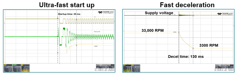 许多终端设备在启动和状态切换时都极其依赖快速响应,为此,MCx 系列专为系统提供了超快启动与快速减速序列。工程师可以根据实际应用需求,灵活配置最匹配的启停策略: