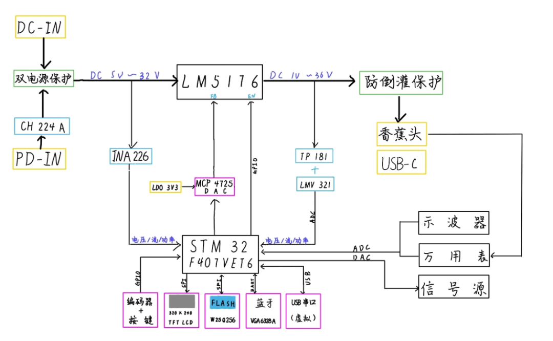 要知道,想实现上述功能,很多商用设备都要靠 “多颗芯片 + 更大的电路板” 才能实现,而作者只通过「1 颗主控 + 巴掌大的主板+2个小板」就全部搞定了