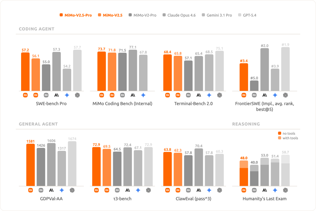 MiMo-V2.5-Pro 专为长难 Agent 任务打造,MiMo-V2.5 覆盖绝大多数通用 Agent 场景