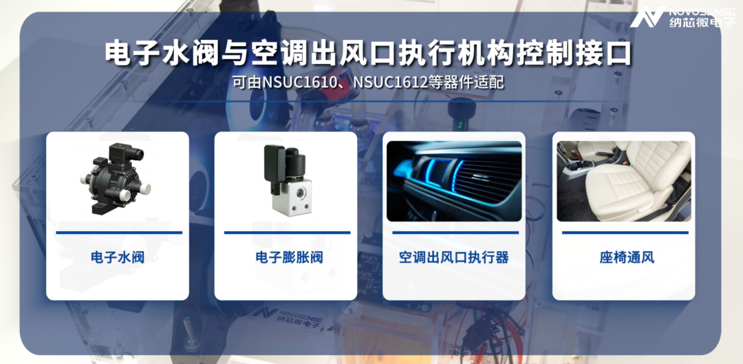 • 产品功能精准匹配水泵油泵、电子水阀、空调风门、氛围灯等各类车载执行器场景;