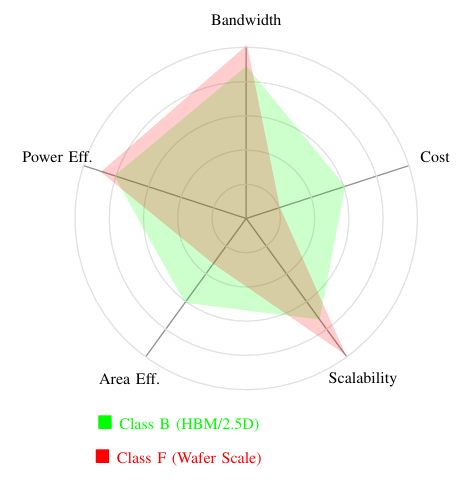 B类HBM GPU和F类晶圆级加速器的trade-off对比雷达图