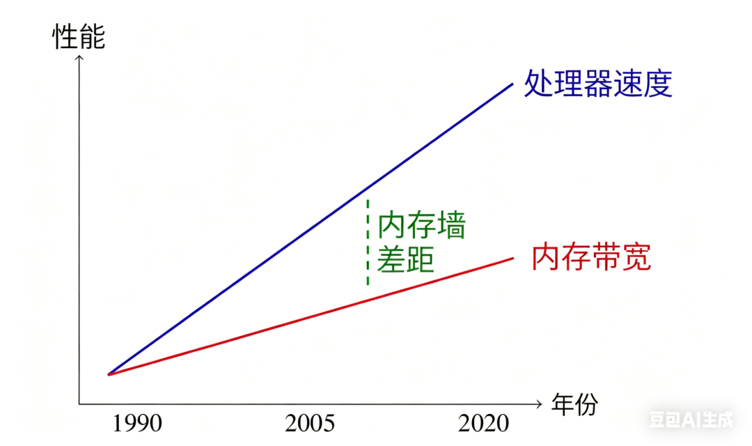 内存墙:处理器速度和内存带宽的差距随时间不断拉大