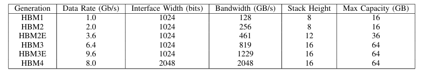 HBM已经发展了好多代,参数提升非常明显: