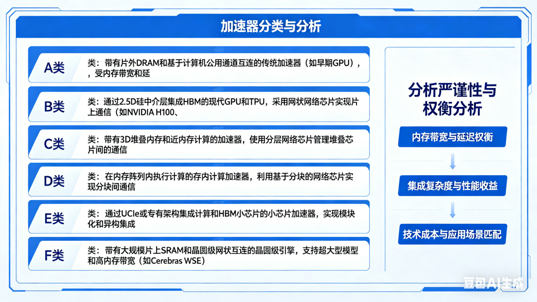 这个分类框架的好处,就是把之前大家关注的计算核心放到了次要位置,抓住了现在AI加速器最核心的矛盾——内存和互联,不管是做研究还是做产品,都能更清晰地对比不同设计,选对技术方向。
