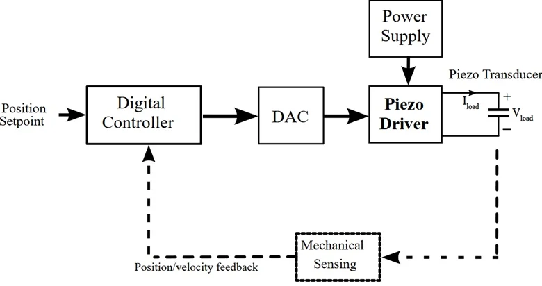 完整的压电驱动器通常由多级放大电路与电压反馈环路组成。本文虽仅聚焦输出级设计,但前级电路与反馈环路同样决定整机带宽与失真指标。