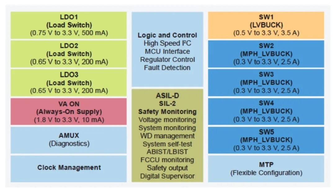 采用独立电路设计,最高可满足汽车ASIL D级和工业SIL 2级安全标准。