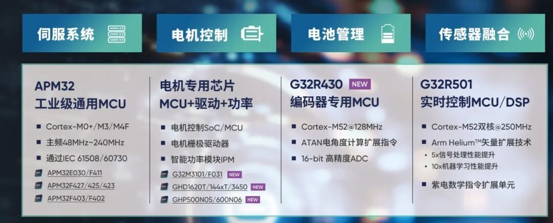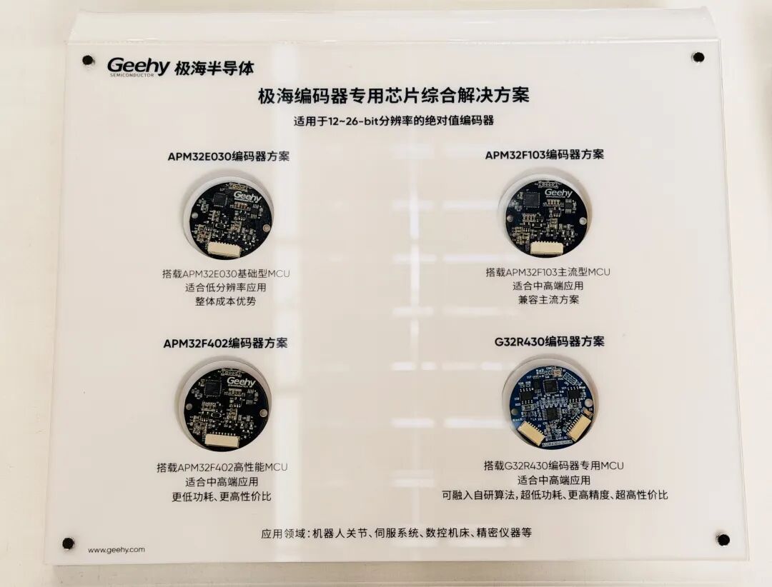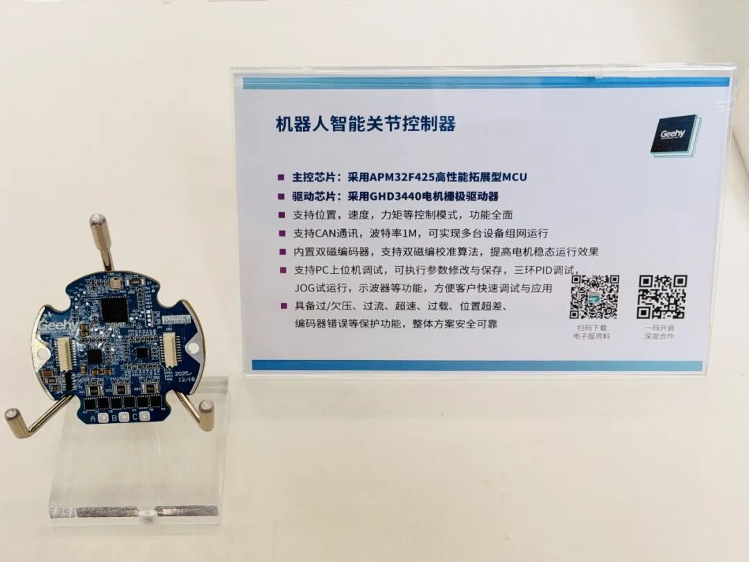 机器人的精准运动与智能决策,离不开底层硬件的协同支撑。极海本次重点展出四大核心芯片产品,全面覆盖从关节执行、精准感知到系统控制的机器人全链路环节。