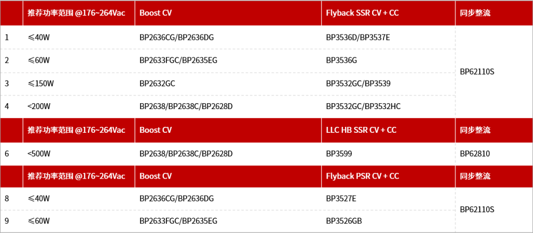 内置碳化硅BP3532GC、BP3532HC恒压系列产品,在大功率恒压电源应用中实现效率跃升和功率密度提升、同时减小产品尺寸、降低整机重量。使电源系统兼具高效率、低发热、高可靠性三大特性,全面护航您的恒压电源应用。