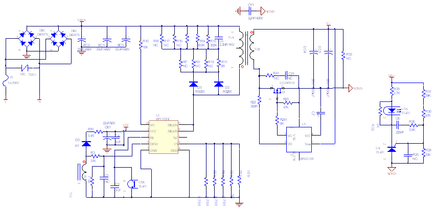 BP3532GC集成高压启动和输入欠压自动降功率保护