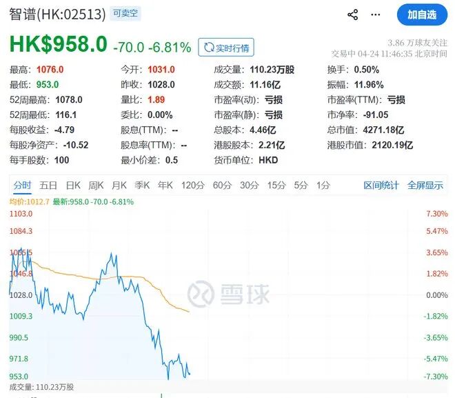 资本市场的反应同样直接。在DeepSeek-V4发布当日,港股大模型概念股智谱(02513.HK)跌超6.8%,Minimax(00100.HK)跌超4.6%,跌势在消息发布后明显扩大。